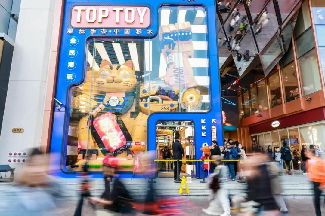 2025年,TOPTOY还在南京东路落地了首家全球旗舰店,面积达1000平。这条黄金商圈的街道上,还坐落着泡泡玛特此前布局的大店,以及总面积2000平的名创优品全球壹号店。通过城市乐园和超大旗舰店的沉浸式体验,品牌们将线下场景从单纯零售点升级为具有「文化包裹感」的IP朝圣地。