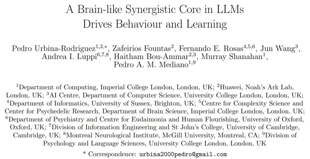 论文标题:A Brain-like Synergistic Core in LLMs Drives Behaviour and Learning