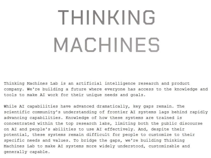 Thinking Machines Lab 的使命是打造「可理解、可定制、更通用」的多模态 AI,让人类通过自然对话、视觉与协作方式和模型互动。研究重点包括单样本或少样本快速适配等等,还承诺定期发布代码、技术博客和数据集,推动开放科学文化。