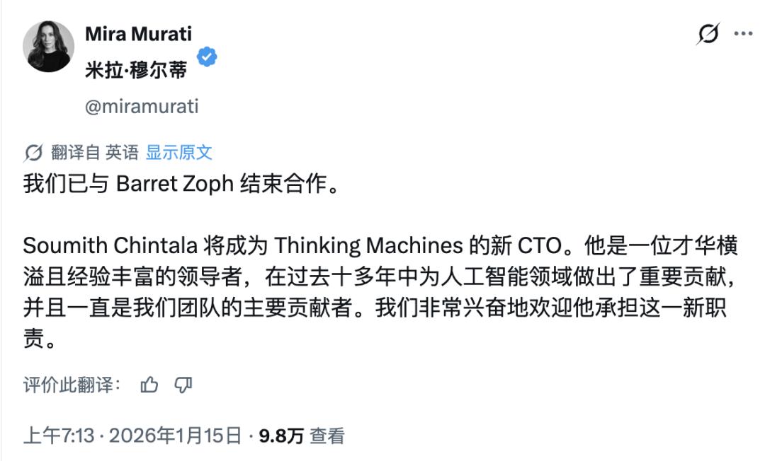就在刚刚,前 OpenAI CTO、Thinking Machines Lab 创始人 Mira Murati 在社交媒体上发了条措辞相当严厉的声明: