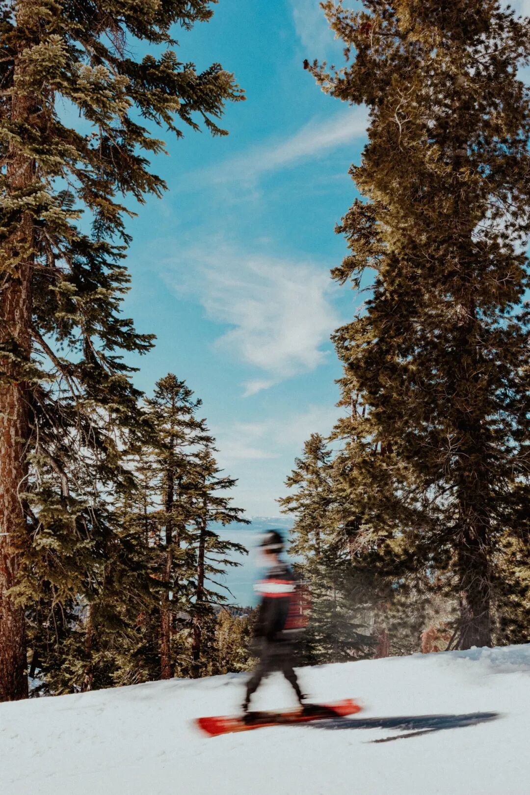 如果在帕利塞兹雪场一侧滑雪感觉像猛喝运动饮料的极限爱好者,那么在高山雪场滑雪更多的是啜饮热可可的优雅感,不是因为它没有挑战性,而是感觉周遭的音量被调低了:游客稀少、队伍更短,使得大家有开放的空间滑行。我前往山的背侧,滑行“舍伍德雪道”,一条可爱的缓坡雪道,阳光洒在太浩湖上,呈现出迷人的钴蓝色。它如此偏远,以至于与度假村的其他部分不在同一个邮政编码。