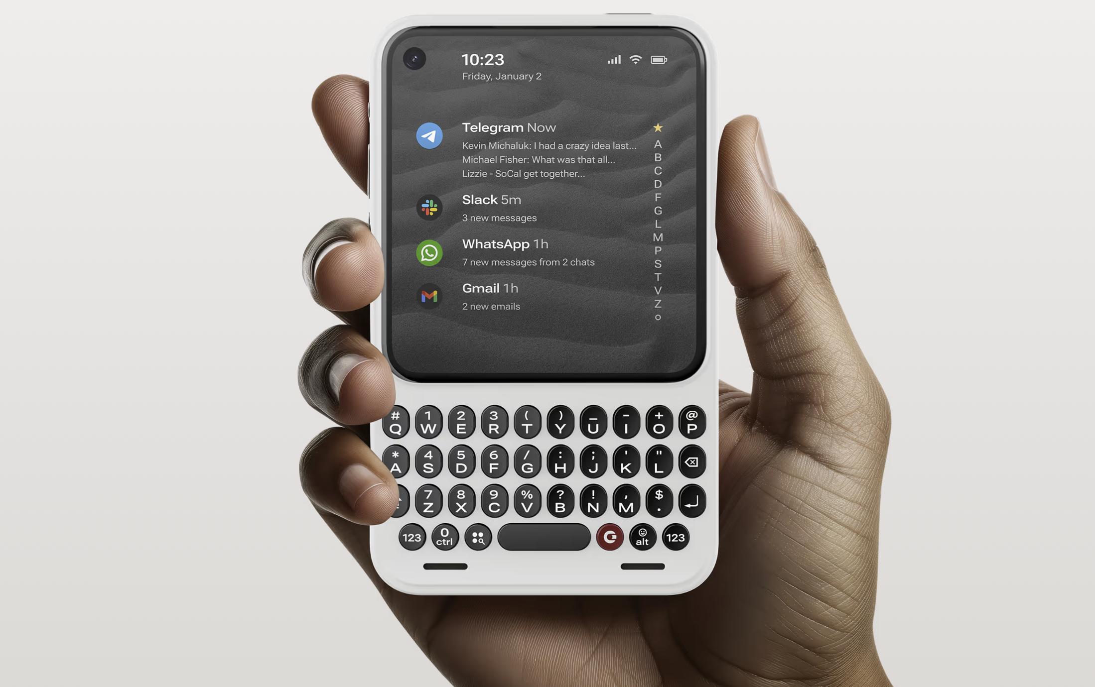 但 CES 2026 现场,我们能看到不止一家厂商展示了方形或接近方形的 AI 硬件:Clicks 推出了采用全键盘设计的 Clicks Communicator;iKKO Mind One 甚至弱化了「手机」属性,将 AI 手机打造成一个可以独立联网的智能节点。这些产品的共同点并不是配置有多强,而是都在推动 AI 设备终端的下一次转型。