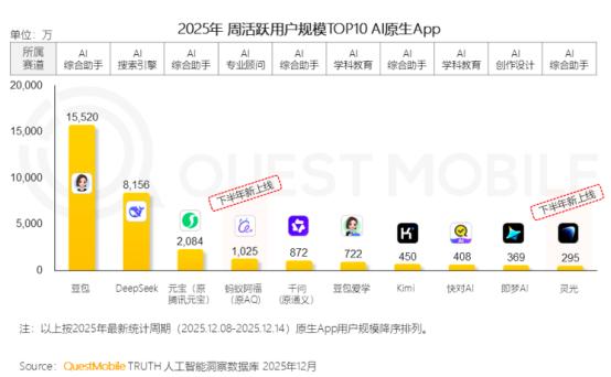 (“阿福”在未来难免还要与别的大厂AI App进行较量 数据来源:Quest Mobile)