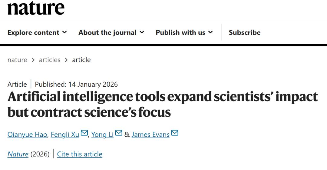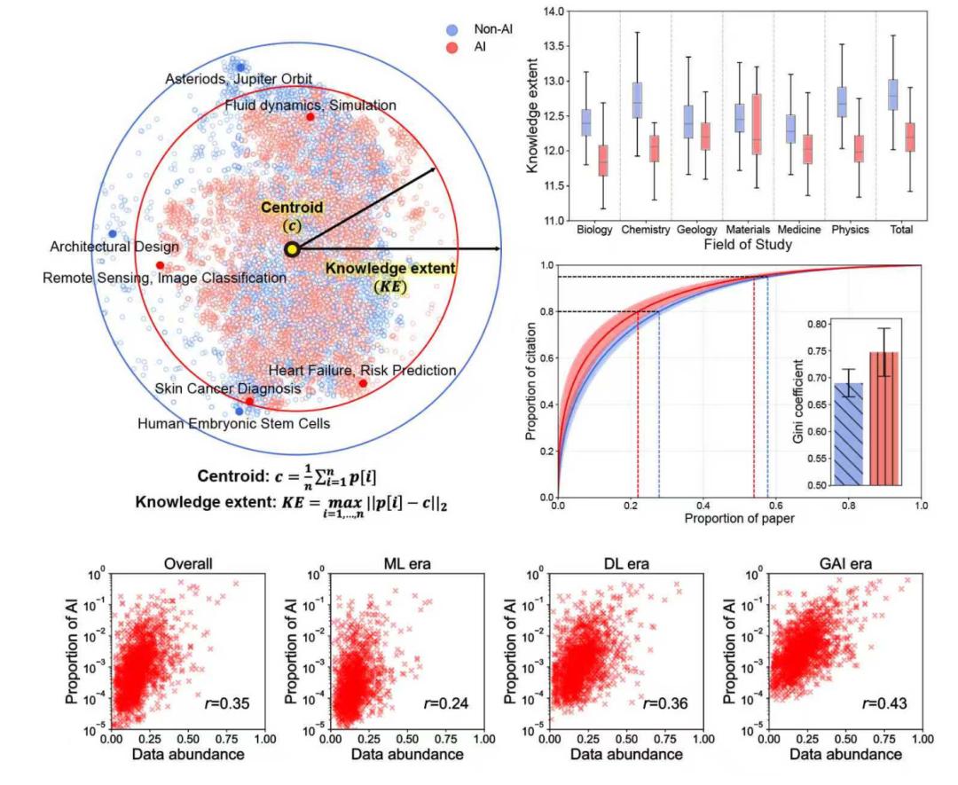 于是,团队向着这一问题出发了,并最终发表了《Artificial Intelligence Tools Expand Scientists’ Impact but Contract Science’s Focus》这篇论文。
