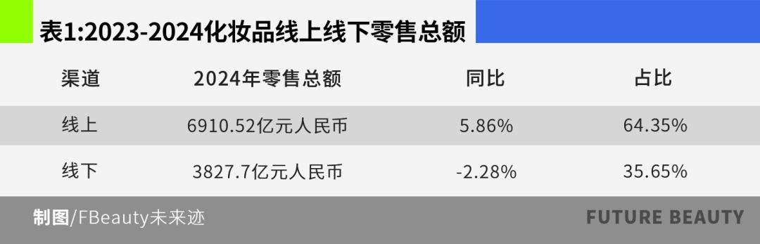 根据中国香妆协会产业研究中心统计,2024年线下渠道化妆品零售总额为3827.7亿元,同比下滑2.28%。占2024年化妆品线上线下全渠道零售总额的35.65%。