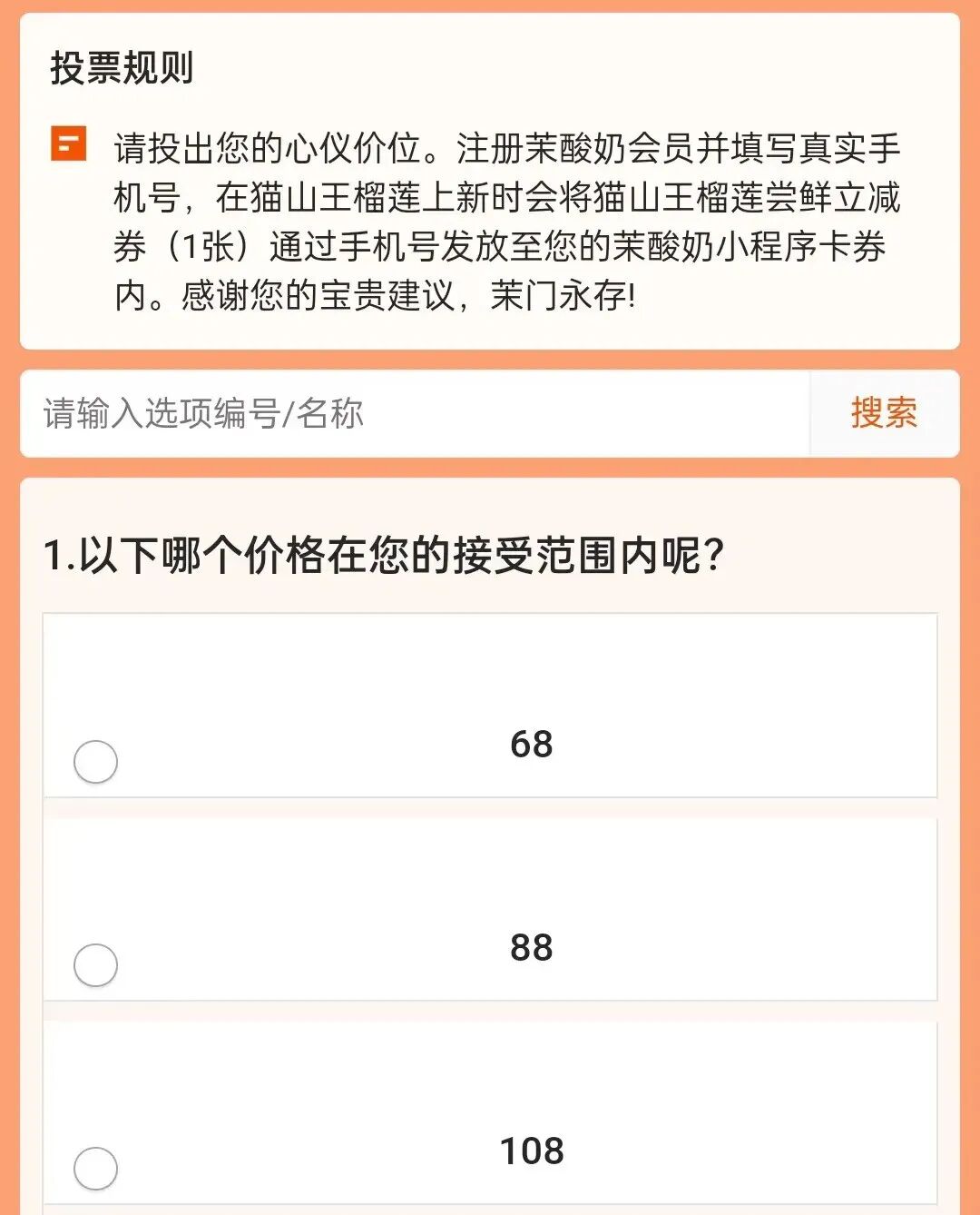 更狠的是2023年茉酸奶发布了一个问卷,针对新品征求价格,起步价是68元,紧接着还有88元和108元的选项。网友感慨:月薪几万,才敢在发工资时点一杯茉酸奶?