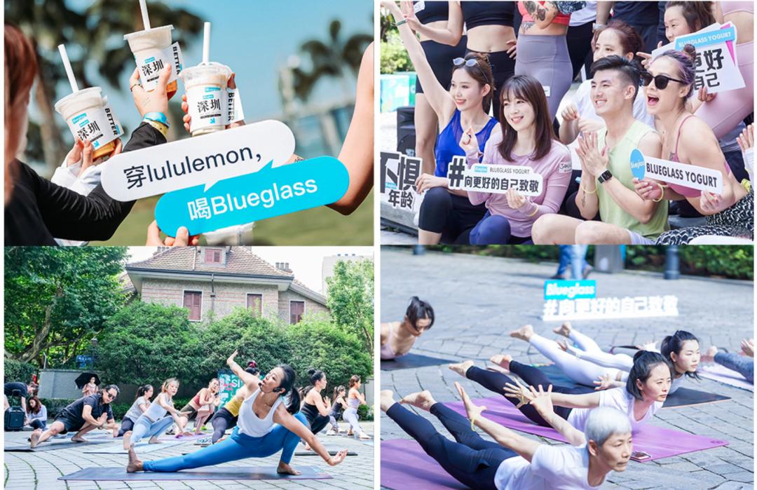 一方面,它和lululemon、超级猩猩等运动品牌联动或绑定。它在上海徐家汇的门店,直接开在了lululemon的店内,成为了“店中店”。其官网还赫然写着“穿lululemon,喝Blueglass”的宣传语。
