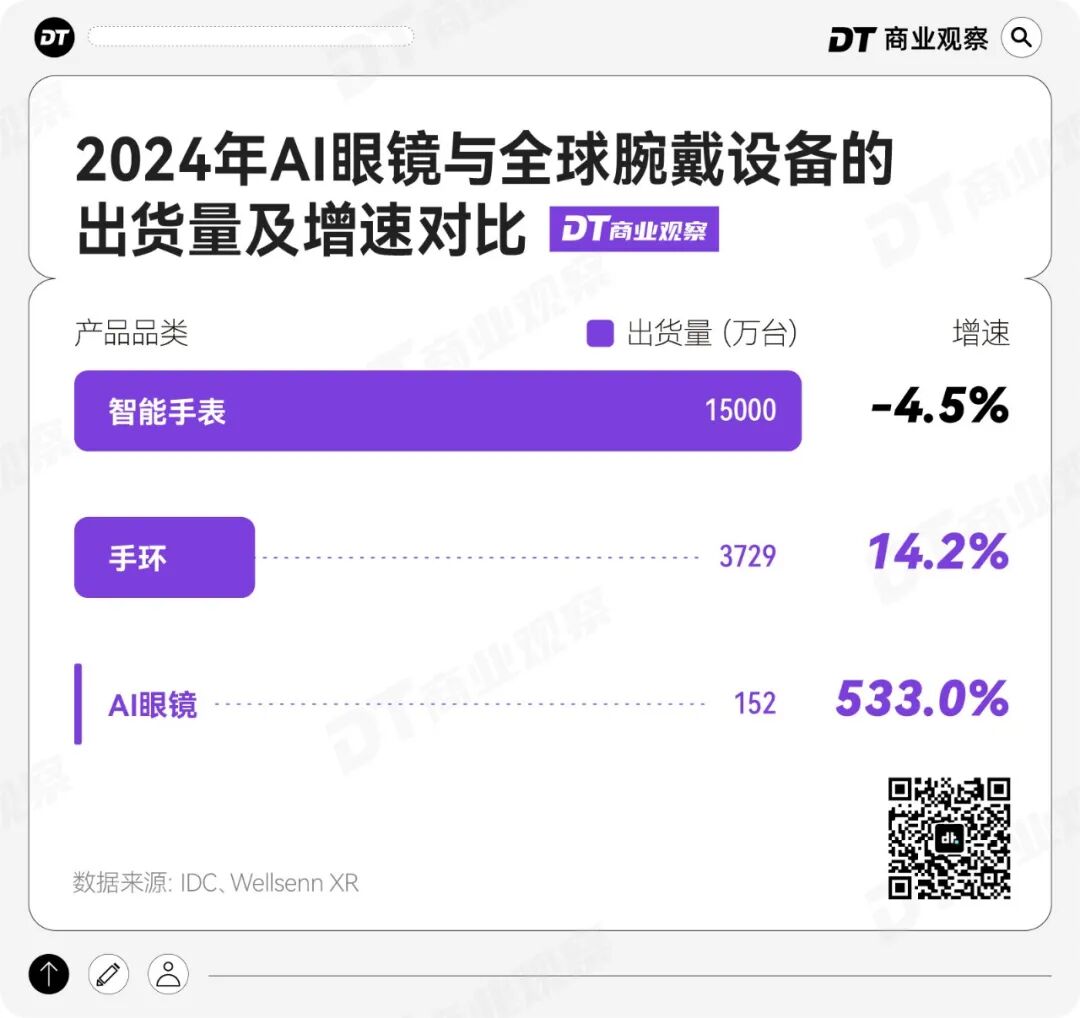 2024年AI眼镜销量是智能手表的1/125,但同比增长533%