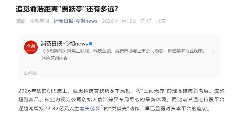 1月12日俞浩在社交媒体表示,追觅生态将成为人类历史上第一个百万亿美金的公司生态。声称将对标马斯克,引来不少热议。