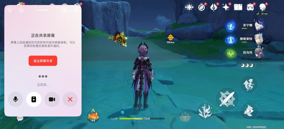 *豆包陪玩原神。通过豆包视频通话中的屏幕共享功能实现,不妨碍游戏操作
