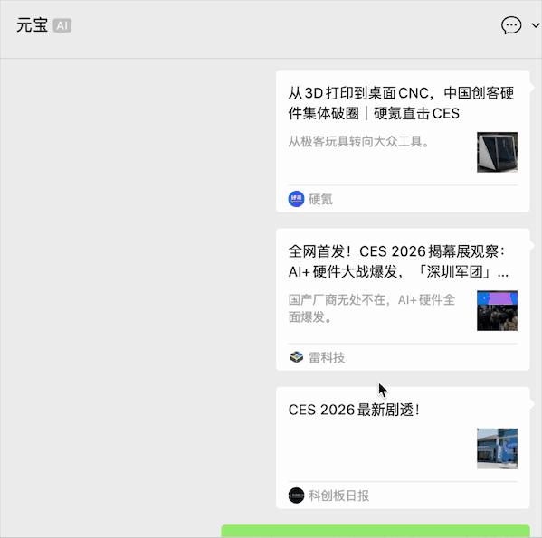 *今年4月元宝上线微信。刚好最近我在关注CES,把链接丢给元宝,它很快就整理出一份特色产品“榜单”。