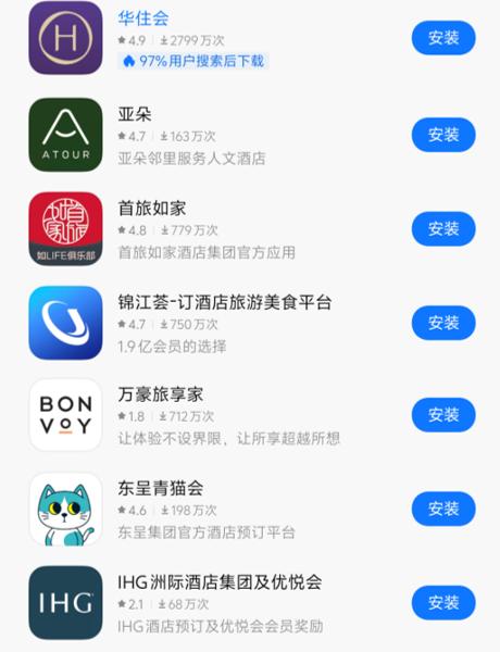 ▲某应用商店内的酒店App