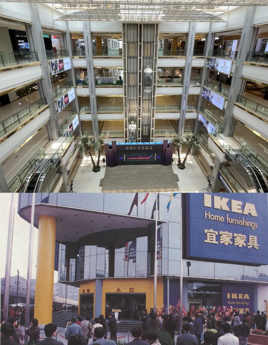 上图:红星美凯龙卖场;下图:1998年宜家上海徐汇首店开业。图片来源网络
