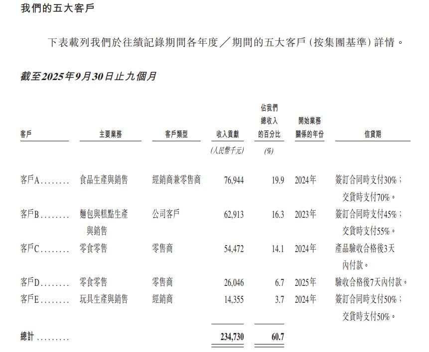 从桑尼森迪提供的客户描述中也能看出,五大客户交易额多年占公司总营收的6-7成。2024年,五大客户中有四家寻求玩家解决方案,受食品公司B所托进行的交易贡献了2024年收入的30%。到2025年,五大客户均为经销商和零售商,体现出对相关渠道的高度依赖。