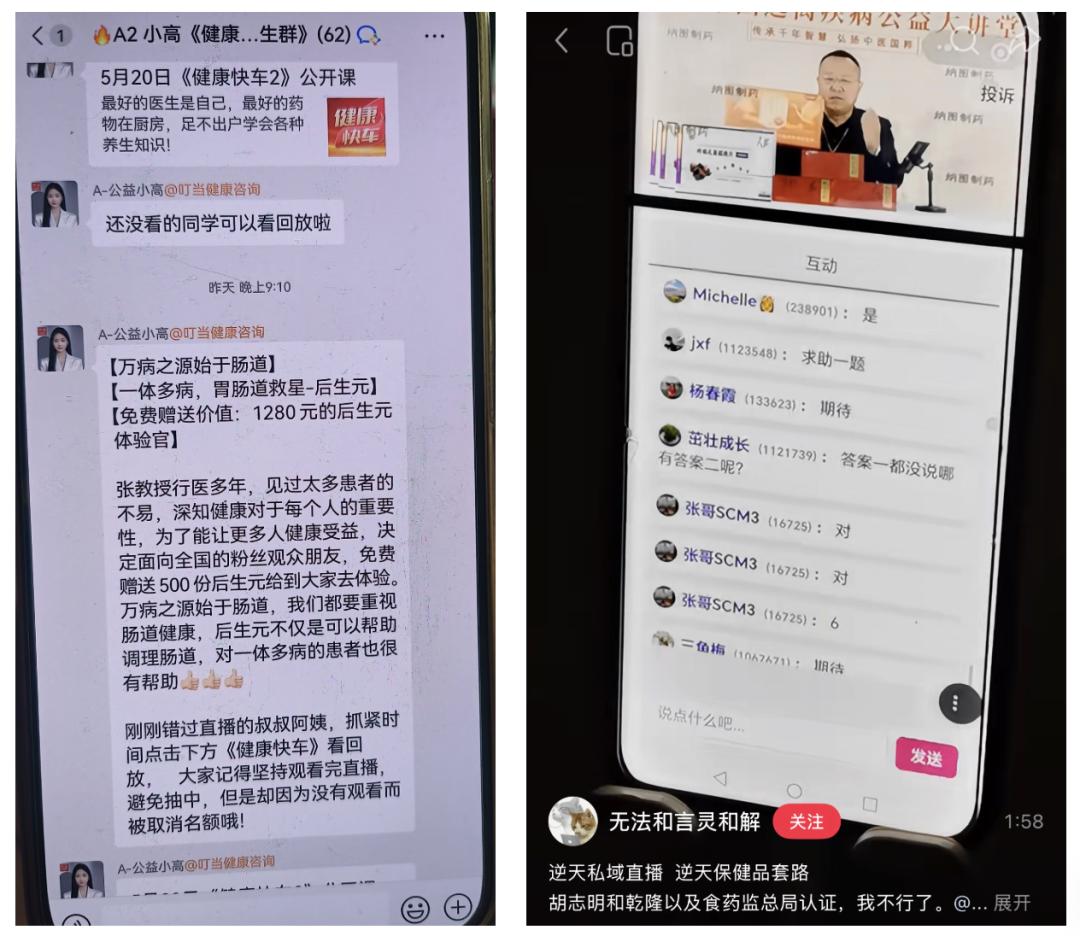 直播间还有提问环节,主播在那儿煞有介事地讲完一通胡编乱造的保健品知识后,会突然话锋一转,开始提问:“姐姐们,刚才弟弟讲的那个能修复细胞的成分叫什么?”