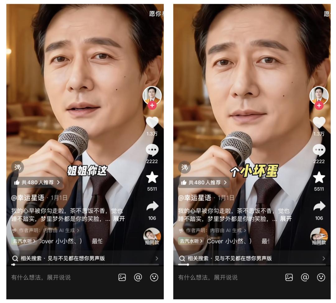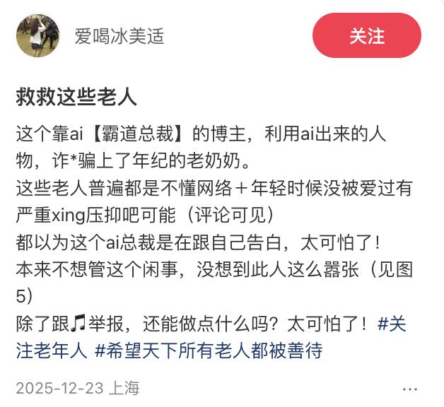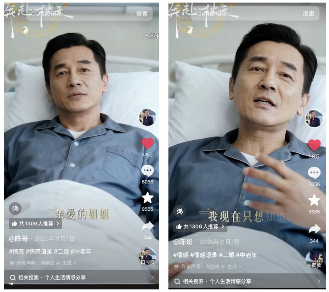 她们会觉得那行“AI生成”的小字,不过是某种无关紧要的手机系统提示,或者是霸总的另类告白:作品由 AI(爱)生成。