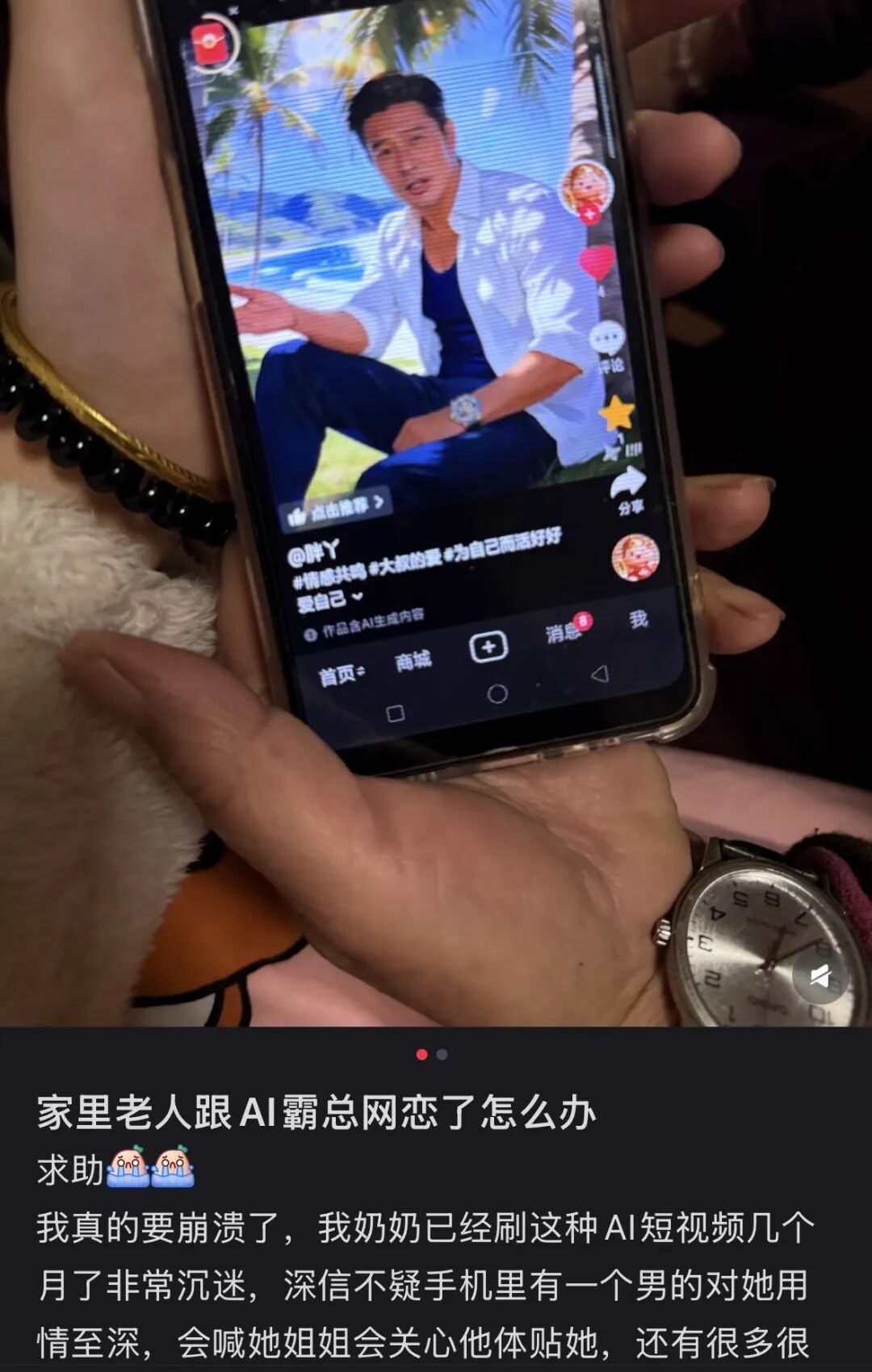如果你最近发现家里那省吃俭用了一辈子的奶奶,突然开始对着手机屏幕羞涩地整理头发,甚至在半夜十二点对着手机低声说“我也想你”。请不要惊慌,她可能只是谈恋爱了——和短视频平台上的 AI 霸总。