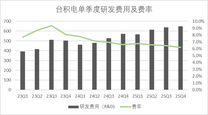 业绩会中,管理层也谈到了新一年的成本预期,2026年台积电的预期折旧费用可能会同比增长10%左右,这个预期明显低于营收增速指引,那么明年台积电折旧占营收的比例很可能会进一步降低,固定成本再一次被摊平。