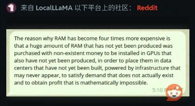 说来抽象,但现阶段“一盒内存堪比上海一套房” “囤内存比囤黄金还赚钱”的本质,就是因为有人想把“不存在的内存条”装在“不存在的GPU”里,随后让它们在“不存在的数据中心”满足那些“不存在的需求”。