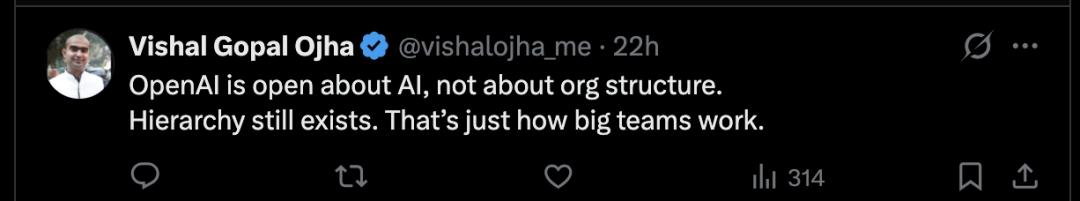 在 X 平台,有用户表示,“OpenAI 在人工智能领域是开放的,但在组织结构方面则不然。