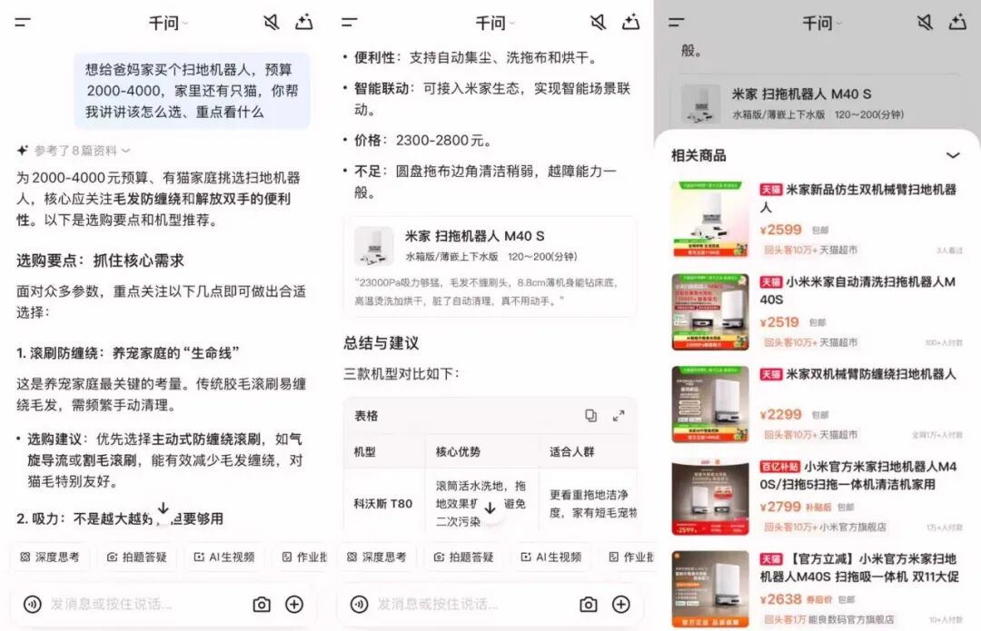 相比之下,坐拥电商、支付、本地生活与出行服务的阿里,在“办事型AI”的整合上显得更为顺手。千问将下单、支付、履约直接内嵌进对话流程,在压缩用户操作路径的同时,实现了用户生态的打通。