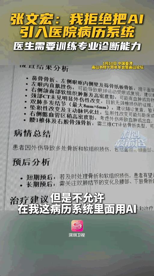 提出反对声音的,是复旦大学附属华山医院感染科主任张文宏。近期在出席论坛中,作为在临床一线摸爬滚打多年的专家,他的担忧直指核心:年轻医生需要专业的训练,才能判断 AI 的对错。