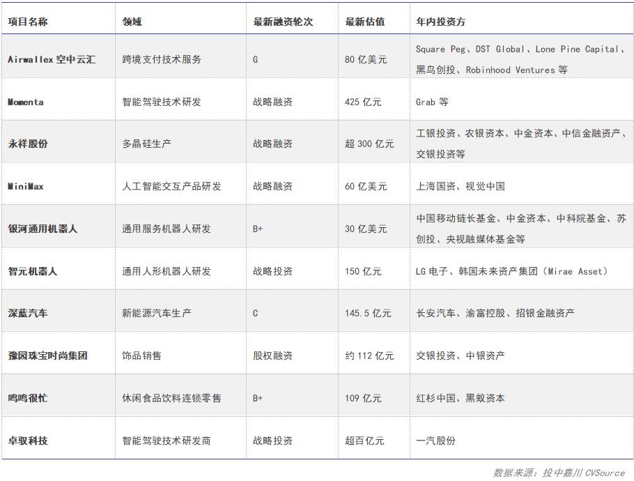 表9:2025年中国VC/PE市场最受关注项目之估值最高TOP10