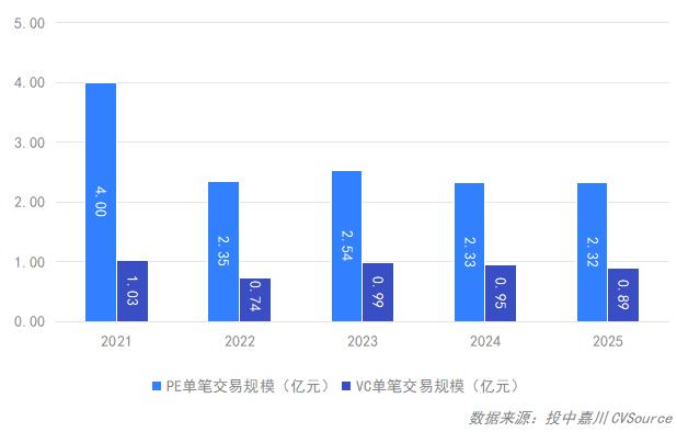 图13:2021年-2025年中国VC/PE市场投资均值概况