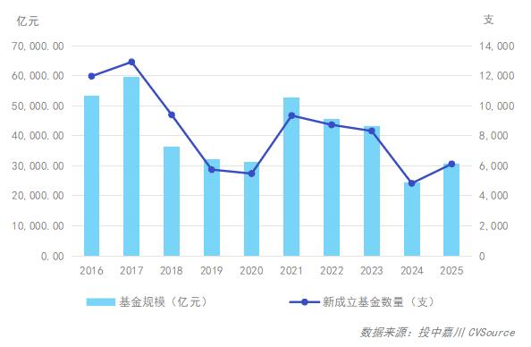图1:2016年-2025年新设立基金数量及规模概况