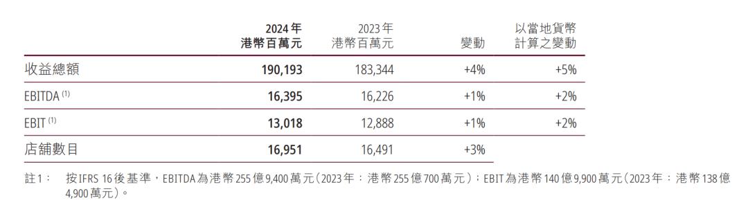 图/屈臣氏集团2024年业绩数据,来源/长和财报