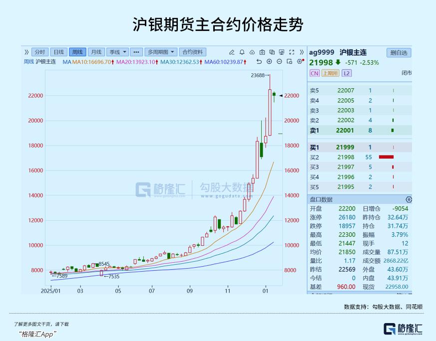 2025年以来,上海黄金交易所现货白银价格从年初的7600元/千克,一路飙升至年末的23688元/千克,年内涨幅超150%。