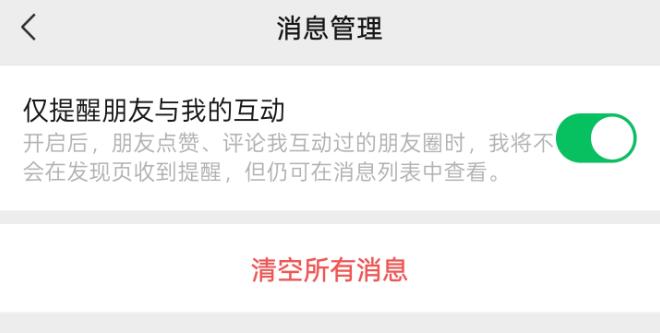现在,微信总算明白了,出了一个「仅提醒朋友与我的互动」的开关。