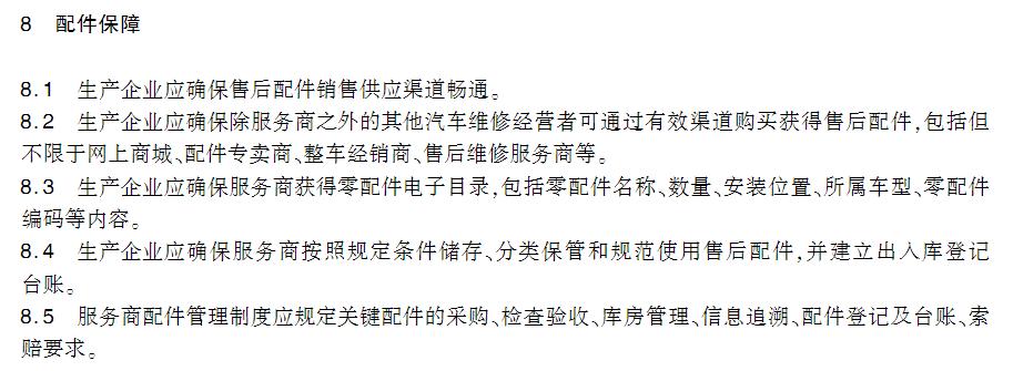 就比如交通运输部在今年 7 月份开始实施的《新能源汽车售后维修服务能力技术要求》,里头就对车企和第三方售后服务都做出了一些规定。