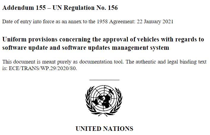 UN Regulation No. 156 - Software update and software update management system | UNECE