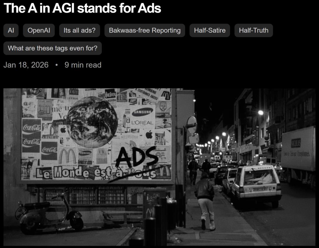 不过,往好处想:如果他们转向广告,这可能意味着通用人工智能(AGI)还没出现在地平线上。