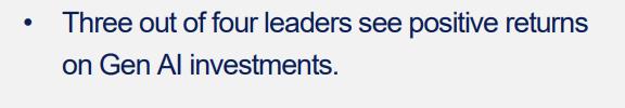 但 10 月份沃顿商学院的一项针对 801 位企业高管的调研又反转了剧情:75% 的企业表示已经尝到了甜头。