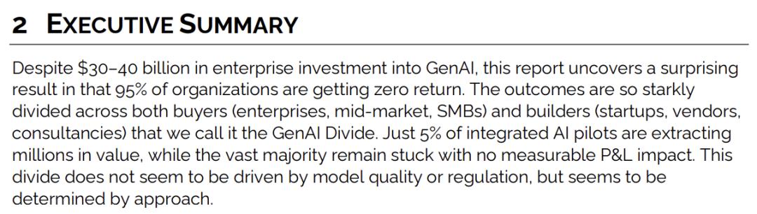 去年 7 月,MIT 泼了一盆冷水,称企业砸下的数百亿美金,只有 5% 的项目能跑通。
