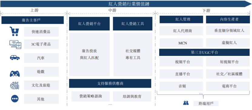 下游包括内容创作者、红人管理实体及第三方UGC平台。