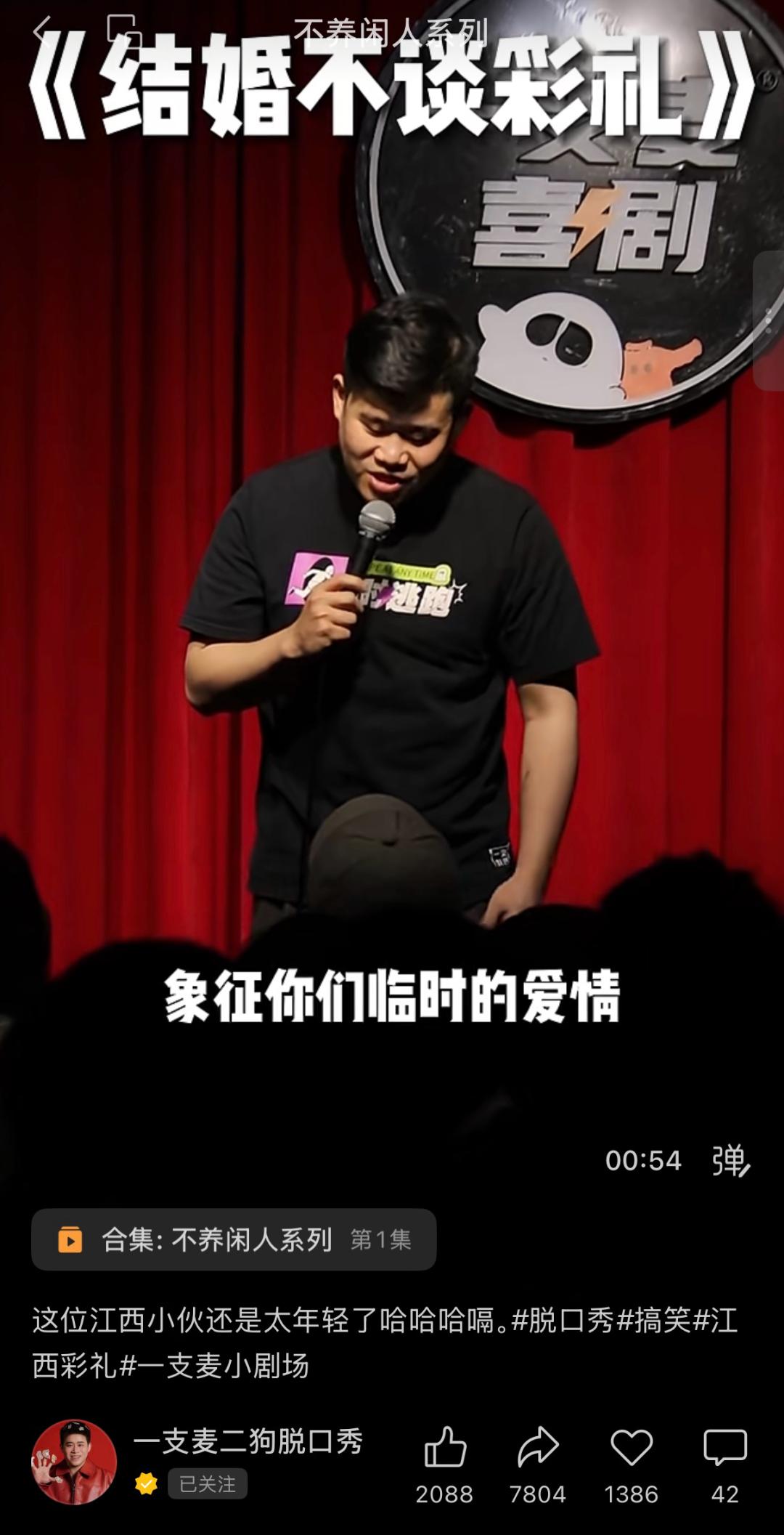 以李波、二狗为代表的脱口秀演员,走出了一条不依赖综艺的独特路径:通过高度互动的线下演出吸引观众,再借短视频传播实现线上反哺线下。二狗所在“一支麦俱乐部”强调前排互动、策划相亲专场等强社交活动。