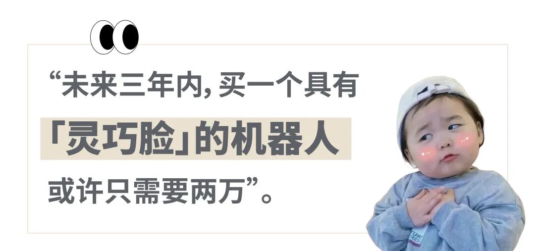 而清华大学智能产业研究院的赵昊教授给出的预估价格更让人兴奋,“未来三年内,买一个具有「灵巧脸」的机器人或许只需要两万”。赵昊团队推出的「灵巧脸」机器人同样是能够模拟表情、实现对话的高精度人脸机器人。「灵巧脸」是在数字人的基础上,让机器人的“骨骼”刚柔并济——运用33 个“刚性机构+线驱动舵”,通过混合驱动结构的形式让机器人做出灵巧的表情反应。