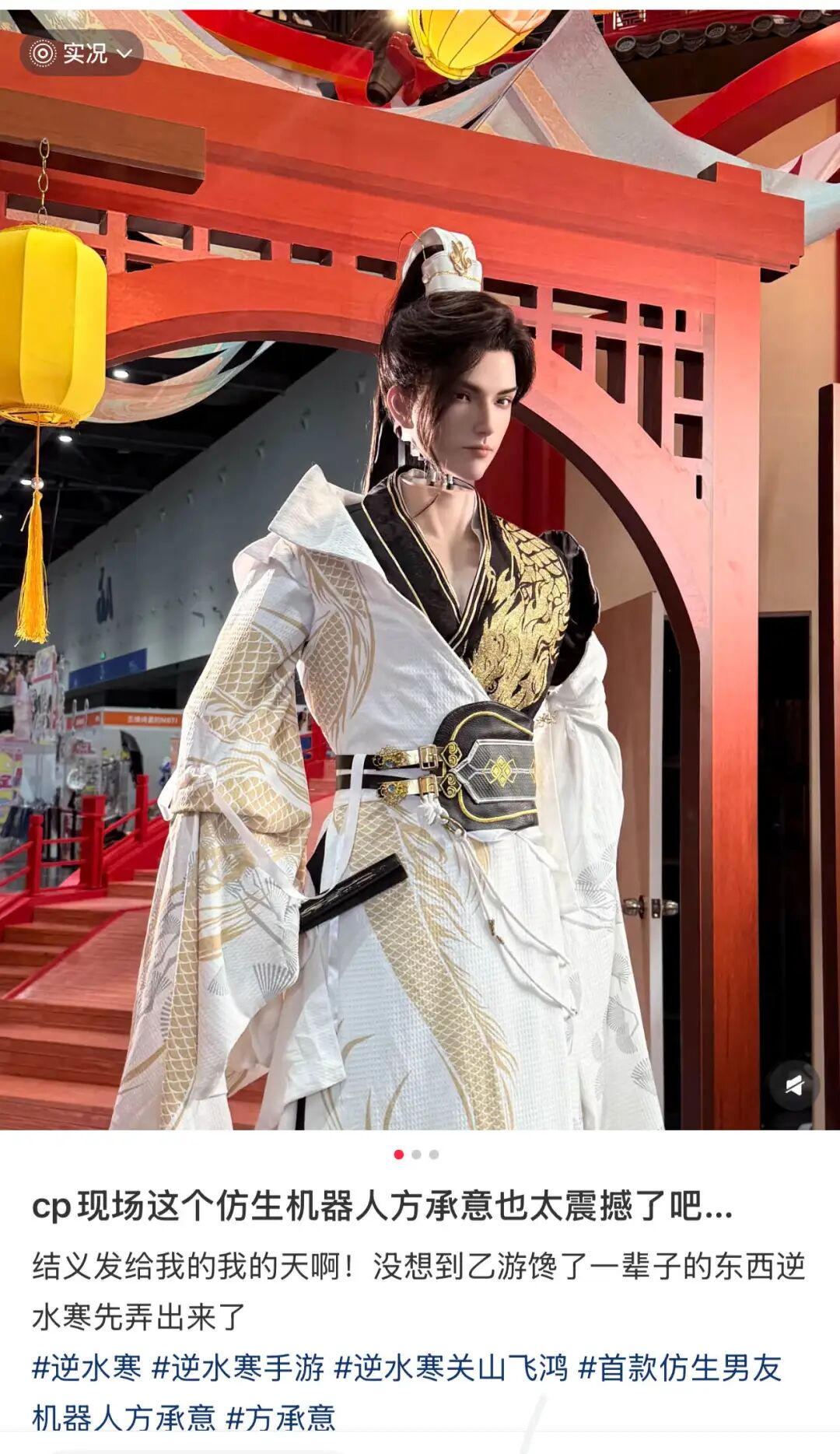 在杭州CP32Pre漫展上,游戏《逆水寒》中的“方承意”一角,就这样水灵灵地走到了玩家的面前。