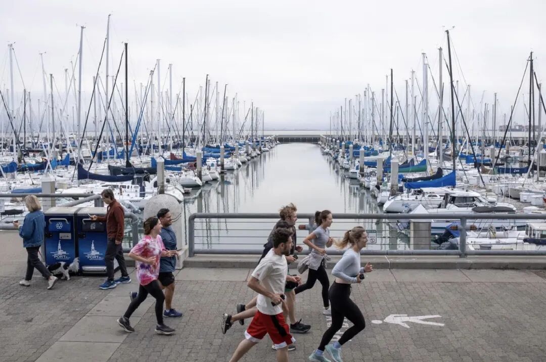 旧金山初创公司创始人们沿Embarcadero滨海大道跑步