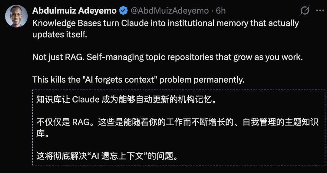 本质上,Anthropic这次引入的知识库,在解决AI的持续学习或者说AI记忆问题。