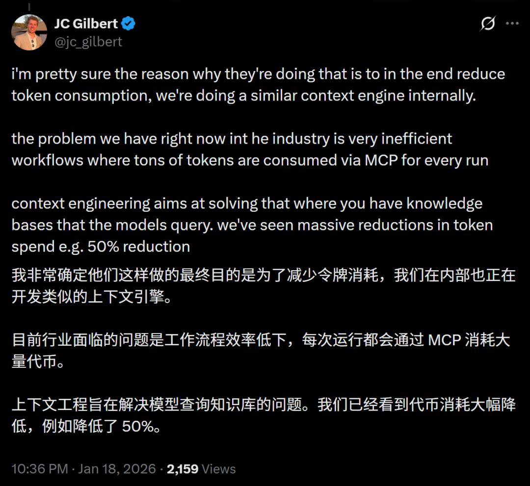 有圈内人自曝说,自家公司给内部也正在开发类似的上下文引擎,推测Anthropic这么做的最终目的,是减少token消耗。