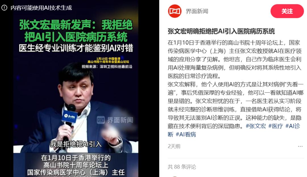 除此之外,如何让更多医生接受AI介入日常诊断,也是百川智能这类企业需要考虑的问题。最近,复旦大学附属华山医院感染科主任张文宏在一场论坛中发言表示其拒绝将AI引入其所在医院的电子病历系统;张文宏认为,年轻医生可以用AI工具查找文献学习,但如果从实习阶段就依赖AI直接得出结论,而没有经过完整的临床思维训练,未来将难以具备鉴别AI诊断正误的能力。