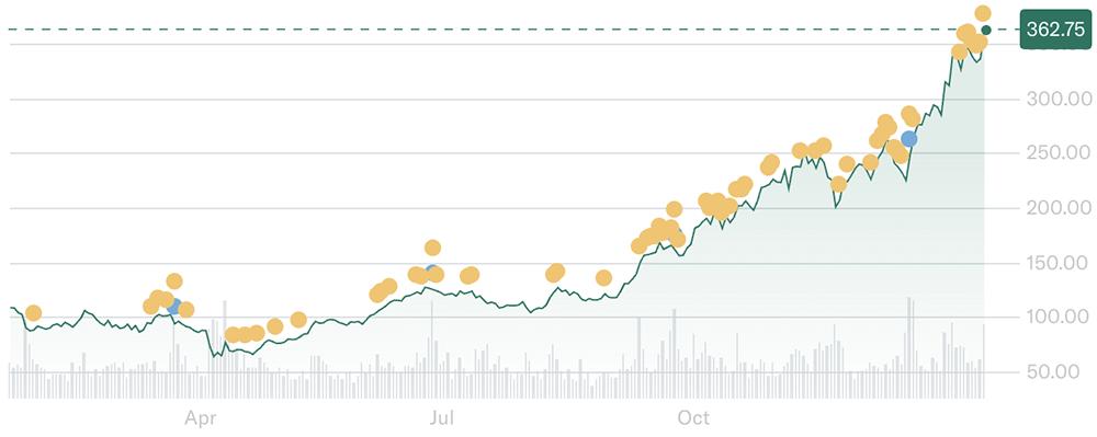 美国存储芯片巨头美光科技股价过去一年涨超250%,最新季度净利润同比大涨180%。