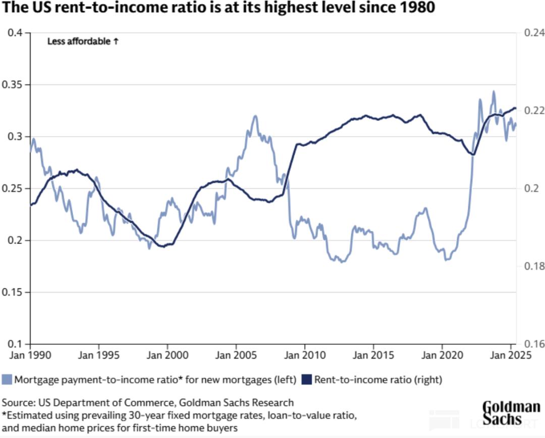 之前海豚君多次说过,房租对可支配收入的挤压明显;而房租基于房贷利率定价,当下高利率是美国居民“租得起”房子的一大绊脚石。
