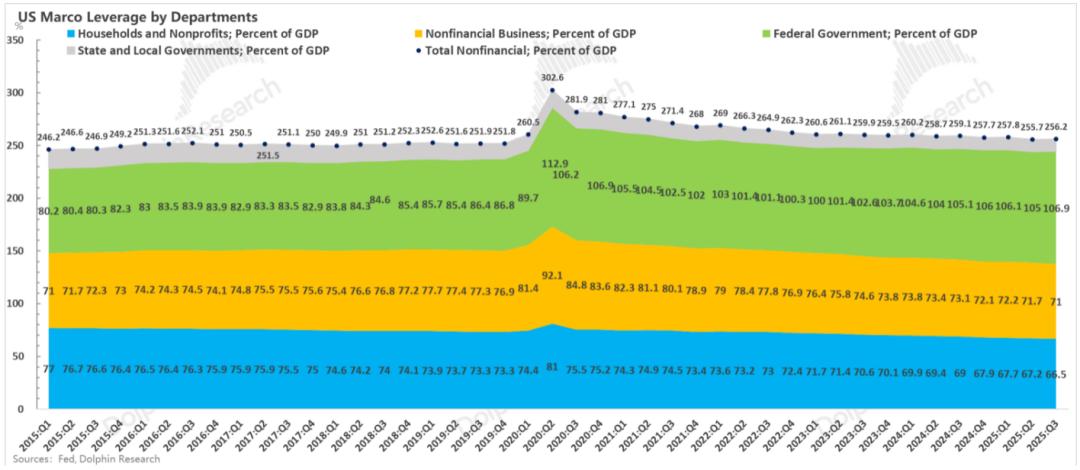 25年狭义赤字(剔利息)因为全球贸易战额外增收1800亿美金,但全年赤字仍有接近7000亿,收不住的原始赤字+高额的国债付息额,基本意味着接下来美国每年都要有2万亿财政赤字,如果AI对经济增长的“救赎”无法落地,结果就会是第三季度美国宏观赤字率——联邦政府赤字率持续被动上升。