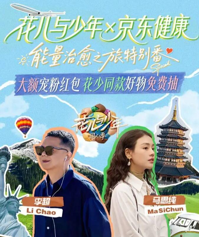无独有偶, 10月25日, 由京东健康独家冠名的 《花少·同心季》制片人李超与 本季 成员马思纯出现在京东健康采销直播间 。 官方在前期官宣海报上就打出了“1元起拍健康好物,送花少同款之旅”的宣传语,直播期间不仅有关于产品的推荐,还有关于节目的问答,而直播中马思纯推荐杨紫来花少更是登上微博热搜,成为热议内容 。此外,在此次直播之前,京东健康就已经在“心脑养护采销直播间”等推出直播特别企划,直播内容包含沉浸式陪看节目、科普心脑知识、深度解读旅途中如何守护健康等环节,将直播与京东健康、综艺节目连接在一起。