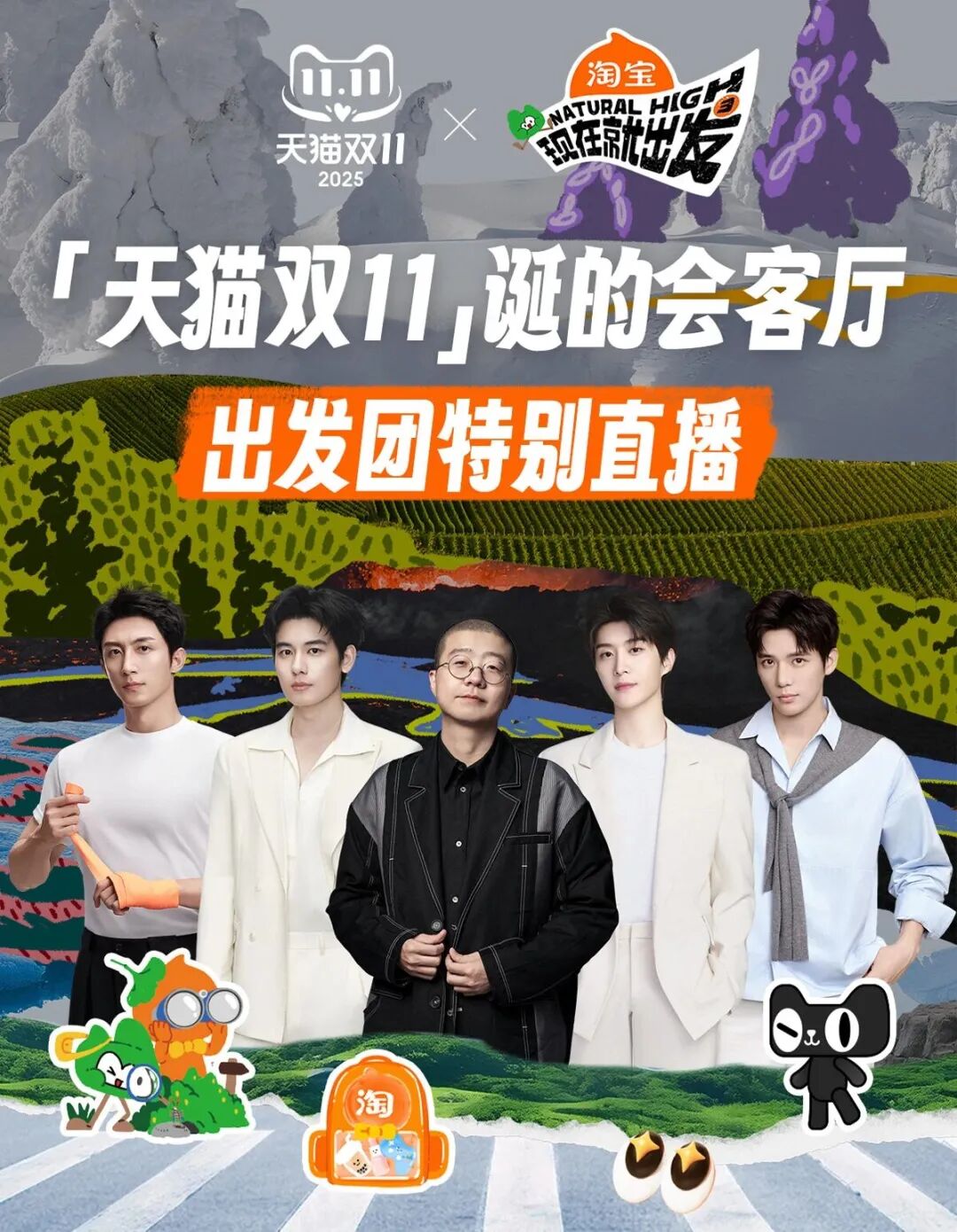 淘宝冠名的《现在就出发3》把握双十一这一节点营销,将节目“搬进了”天猫直播间。 10月19日—11月5日,天猫双十一和《现在就出发3》开启“天猫双十一” 李 诞的会客厅特别直播,黄景瑜、胡先煦、范丞丞、王安宇陆续做客天猫官方直播间, 以 不同主题开启直播,并且直接转场天猫官方直播间, 在直播中,各种旅行、节目录制、与其他成员的互动等感受被一一分享, 各路 产品被 专业主播介绍,出发家族好物、出发团同款等也都在链接 。通过直播,用户追综的增值感、延续感和品牌的带货需求被一起满足。